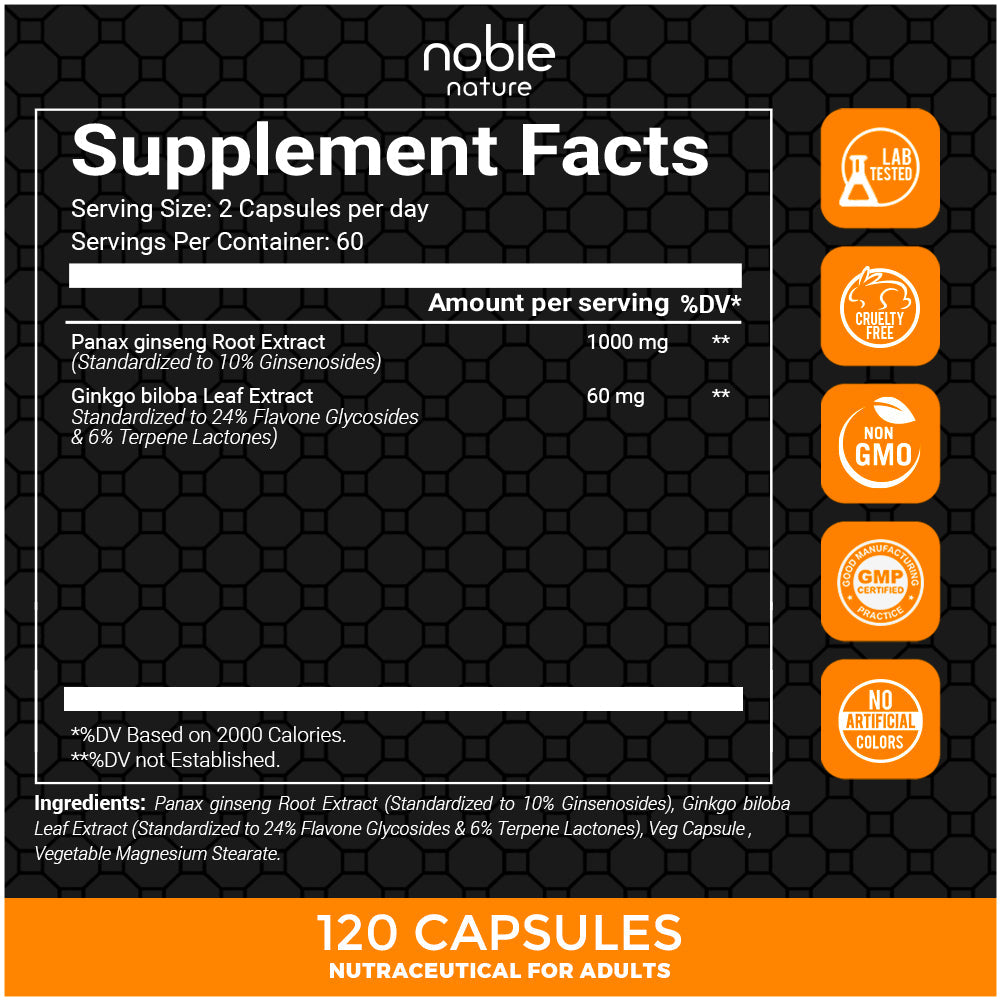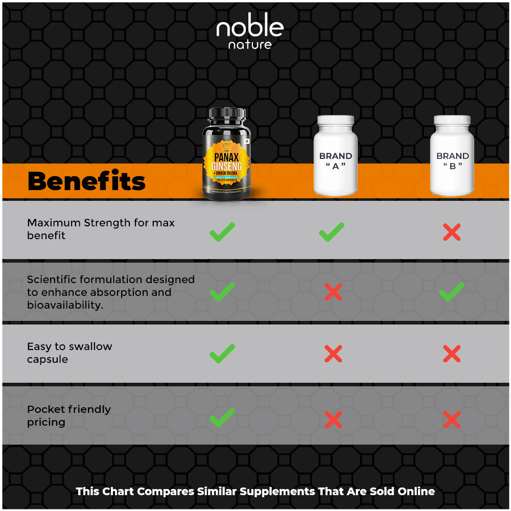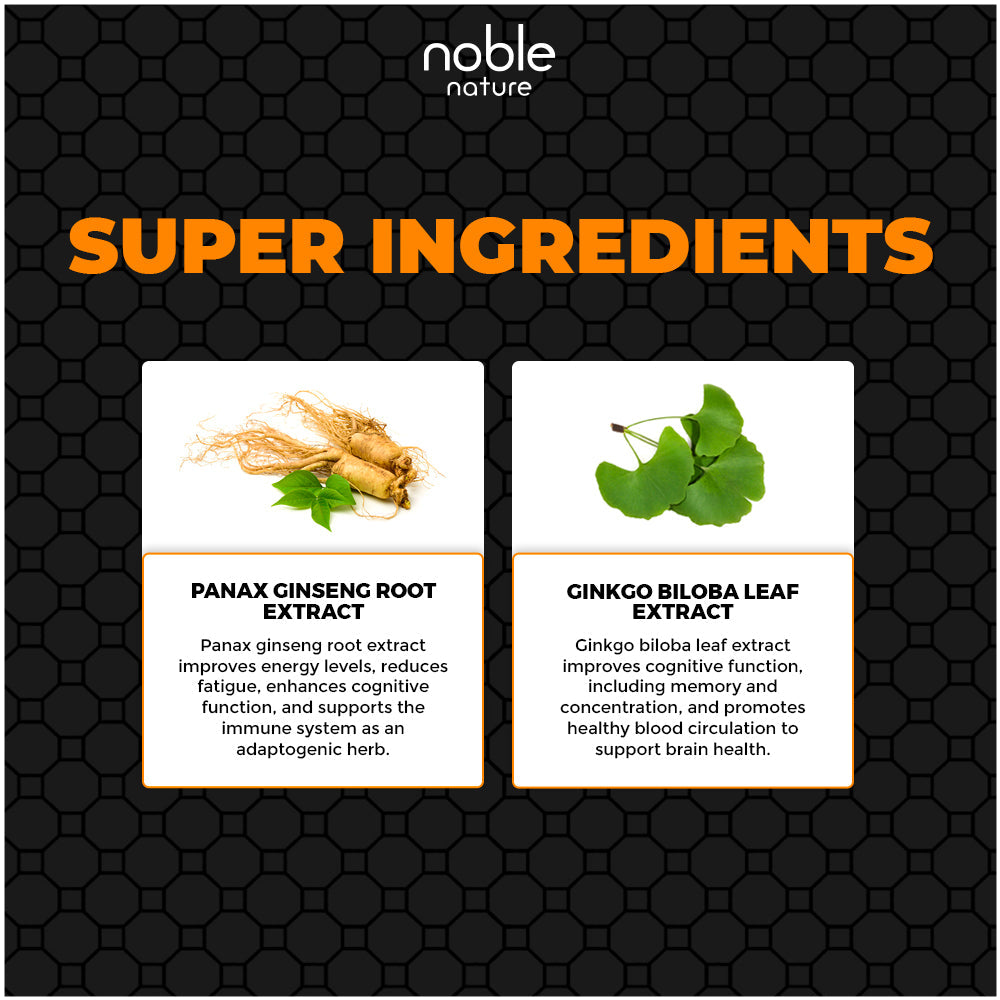 - مُعزِّز للطاقة وتركيز عالٍ: مُكمِّل نوبل نيتشر باناكس جينسنغ مُحسِّن مُجرَّب للذاكرة، ويُبقيك مُتيقِّظًا ويدعم أدائك البدني اليومي. التحسُّنات البدنية والعقلية مثالية للمهن المُرهِقة.