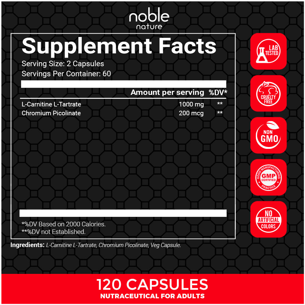 - كبسولة نباتية تحتوي على إل-كارنيتين إل-تارترات-1000 ملغ-120 ملغ