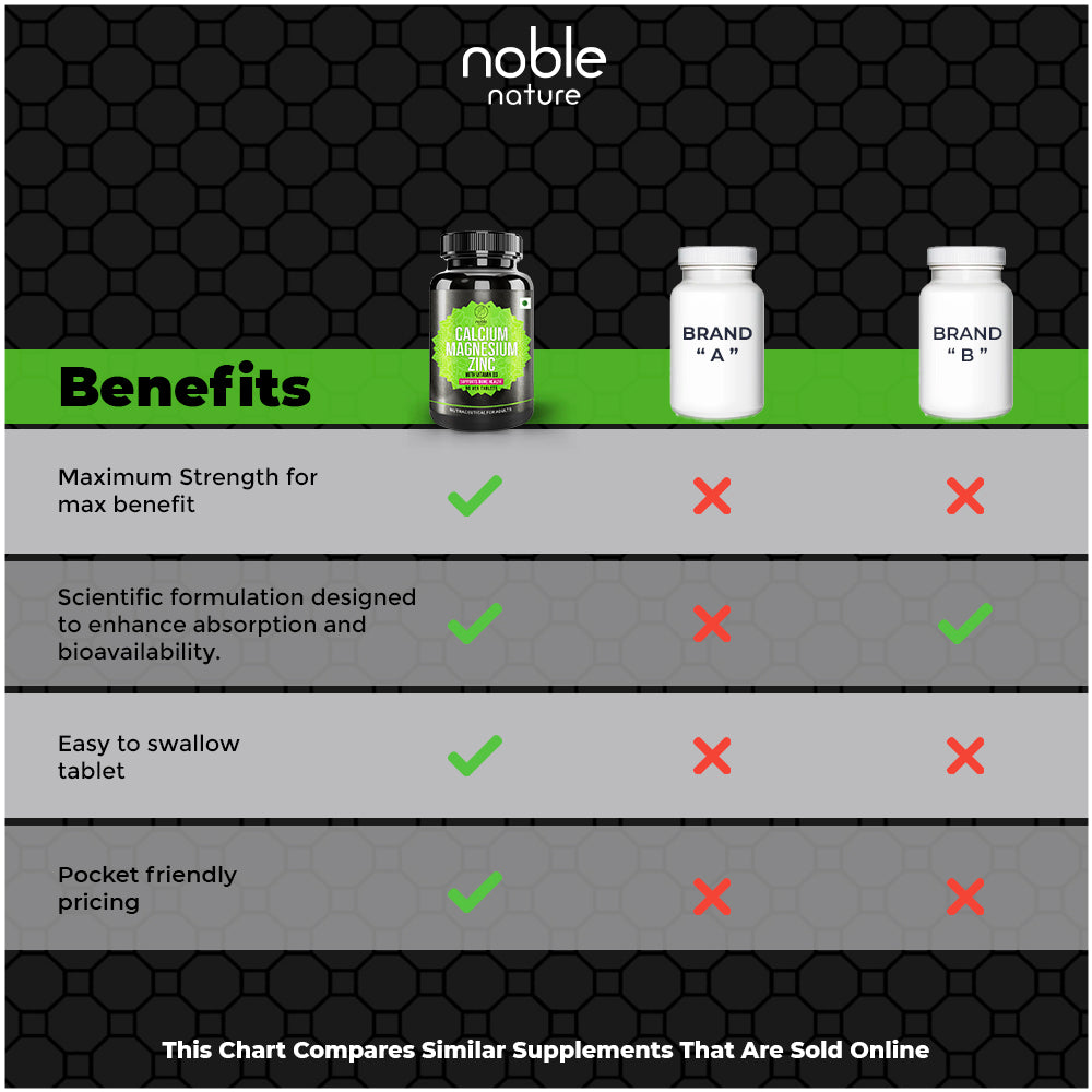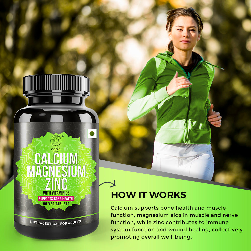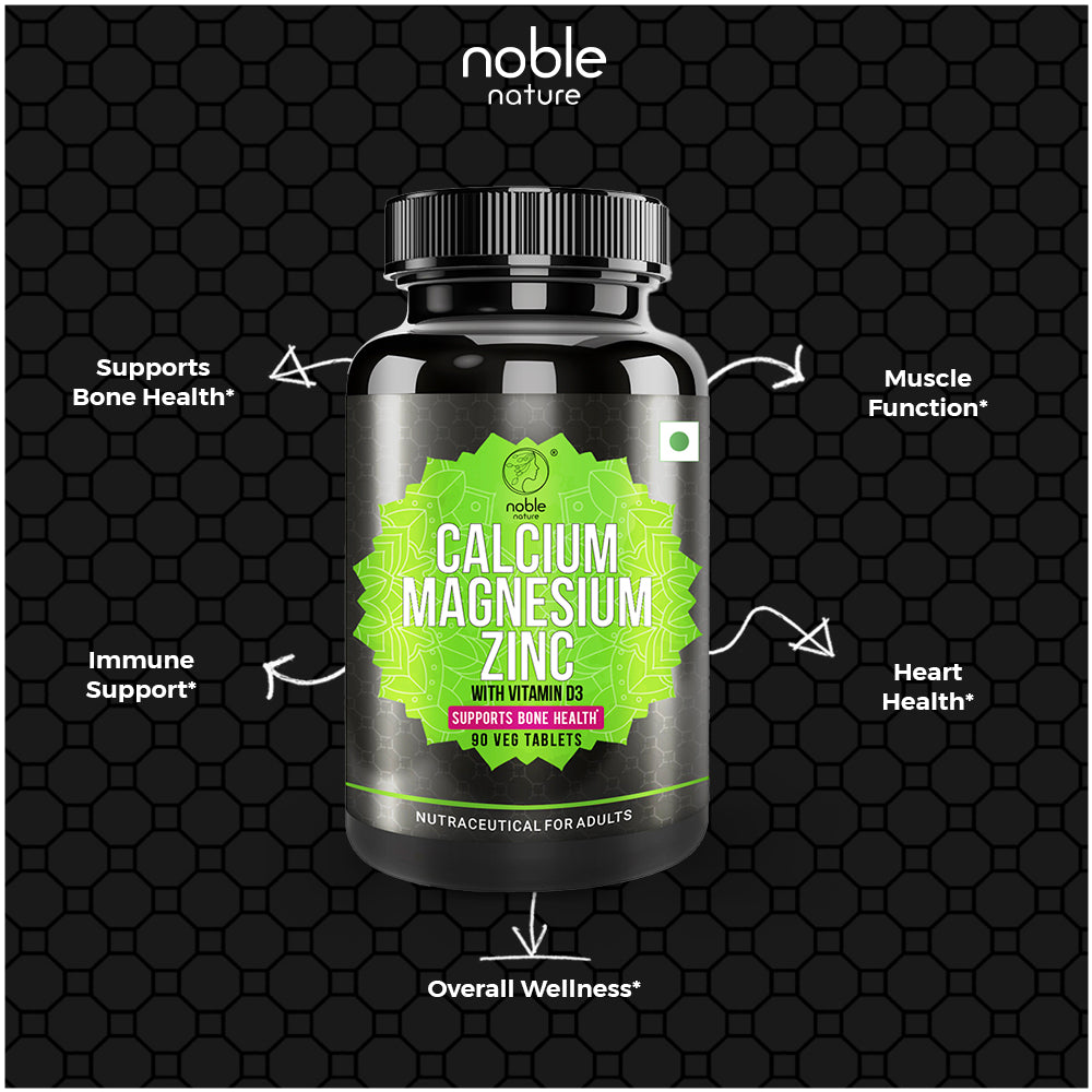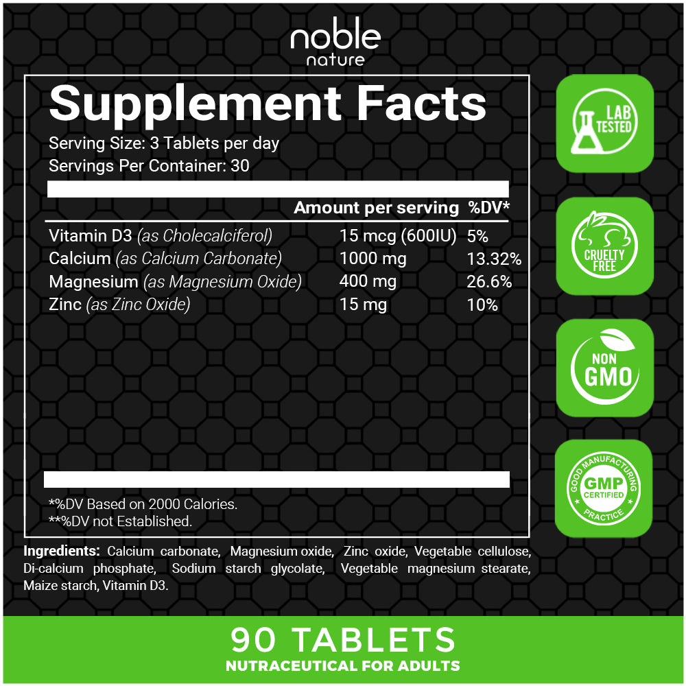 نوبل نيتشر كالسيوم ماغنيسيوم زنك مع فيتامين د3 - مكمل غذائي معدني أساسي، 90 قرصًا - يعزز صحة العظام ويدعم المناعة