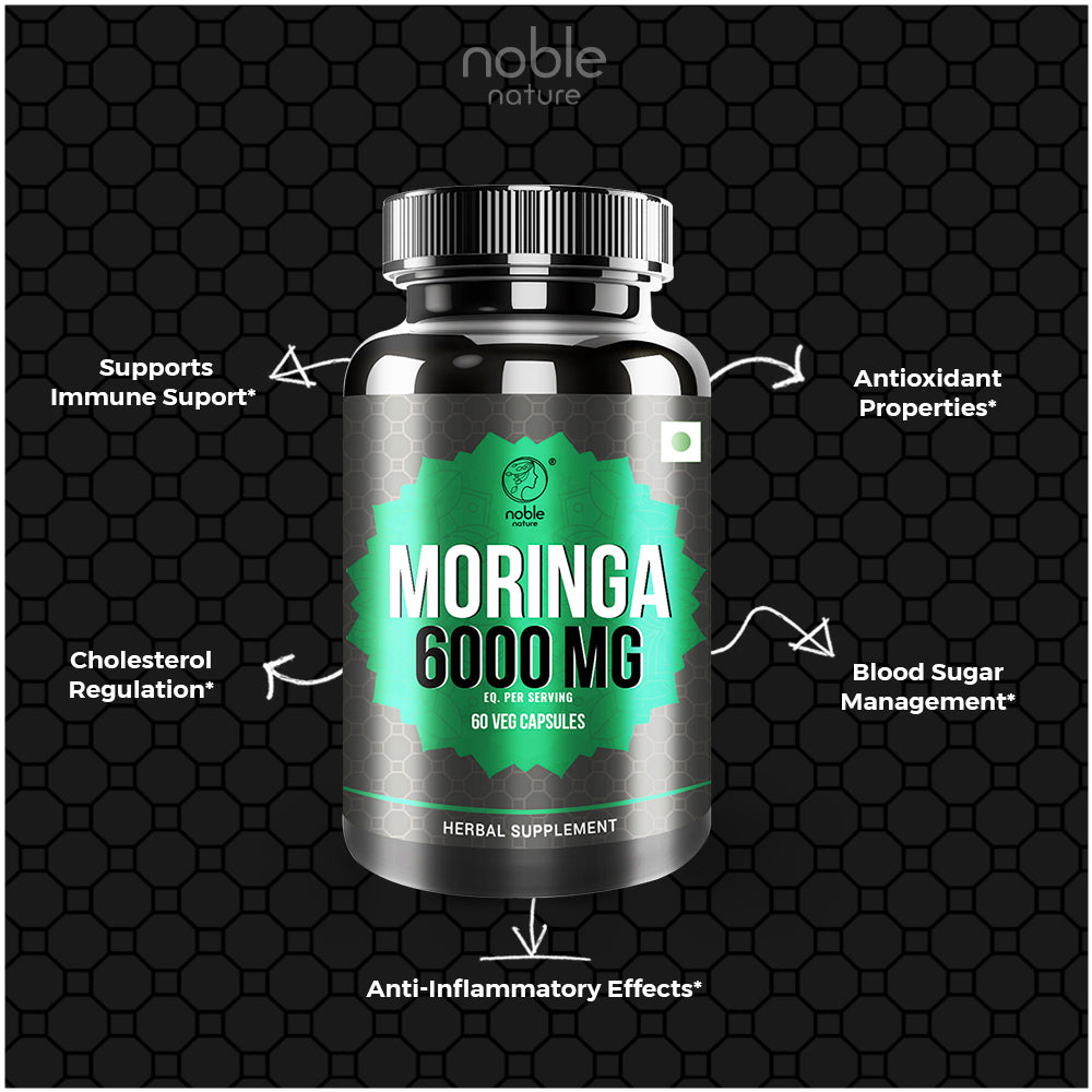 كبسولات المورينجا من نوبل نيتشر، لتعزيز الطاقة الطبيعية، ودعم المناعة، ومضادات الأكسدة القوية - 60 كبسولة نباتية - 6000 ملغ لكل حصة