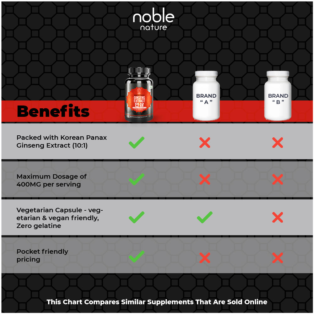 - Enhance Performance in Men & Women - Our Korean Ginseng Roots Supplement delivers a potent boost in vitality that pairs excellently with Noble Nature Herbal Supplements! Ginseng supplements also supports brain, memory & mental health