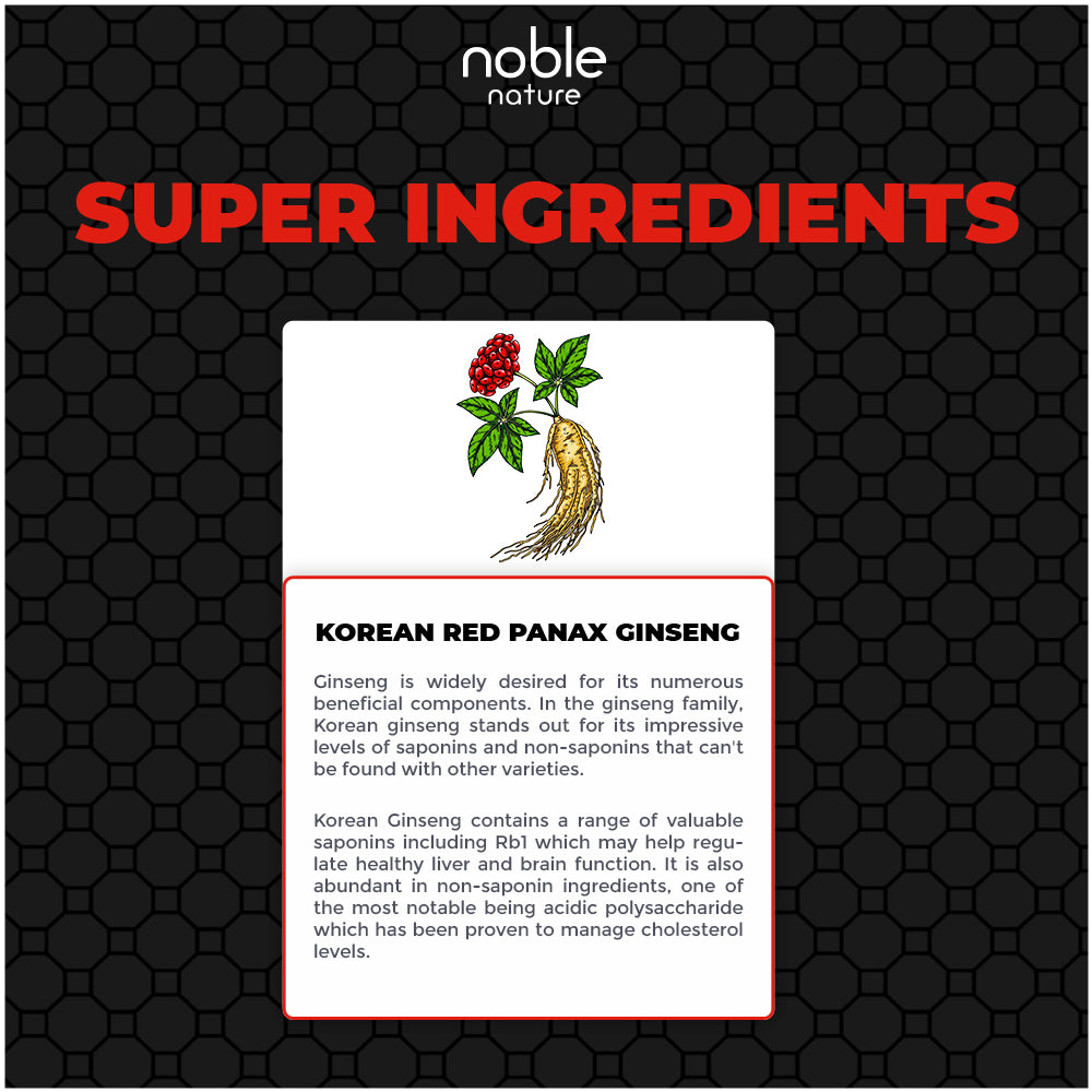 - Extra Strength Panax Ginseng (also known as Korean Ginseng) comes from the plant that was the original source of ginseng. Each handpicked Red Ginseng root is guaranteed to contain 10% ginsenosides. It’s why Noble Nature Ginseng extract as one of the best energy supplements