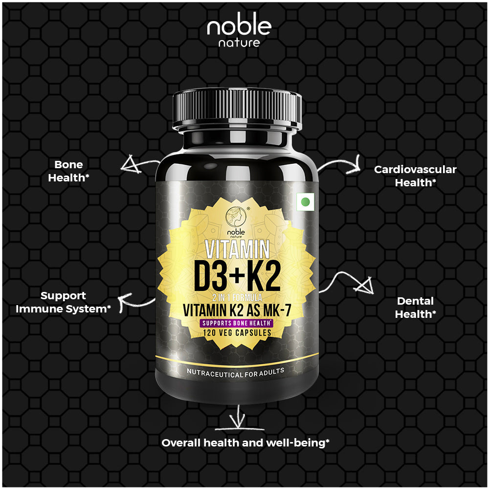 فيتامين د٣ + ك٢ كمكمل غذائي MK7 | يدعم مناعة أقوى وصحة العظام والقلب | صحة القلب للرجال والنساء - ١٢٠ كبسولة نباتية