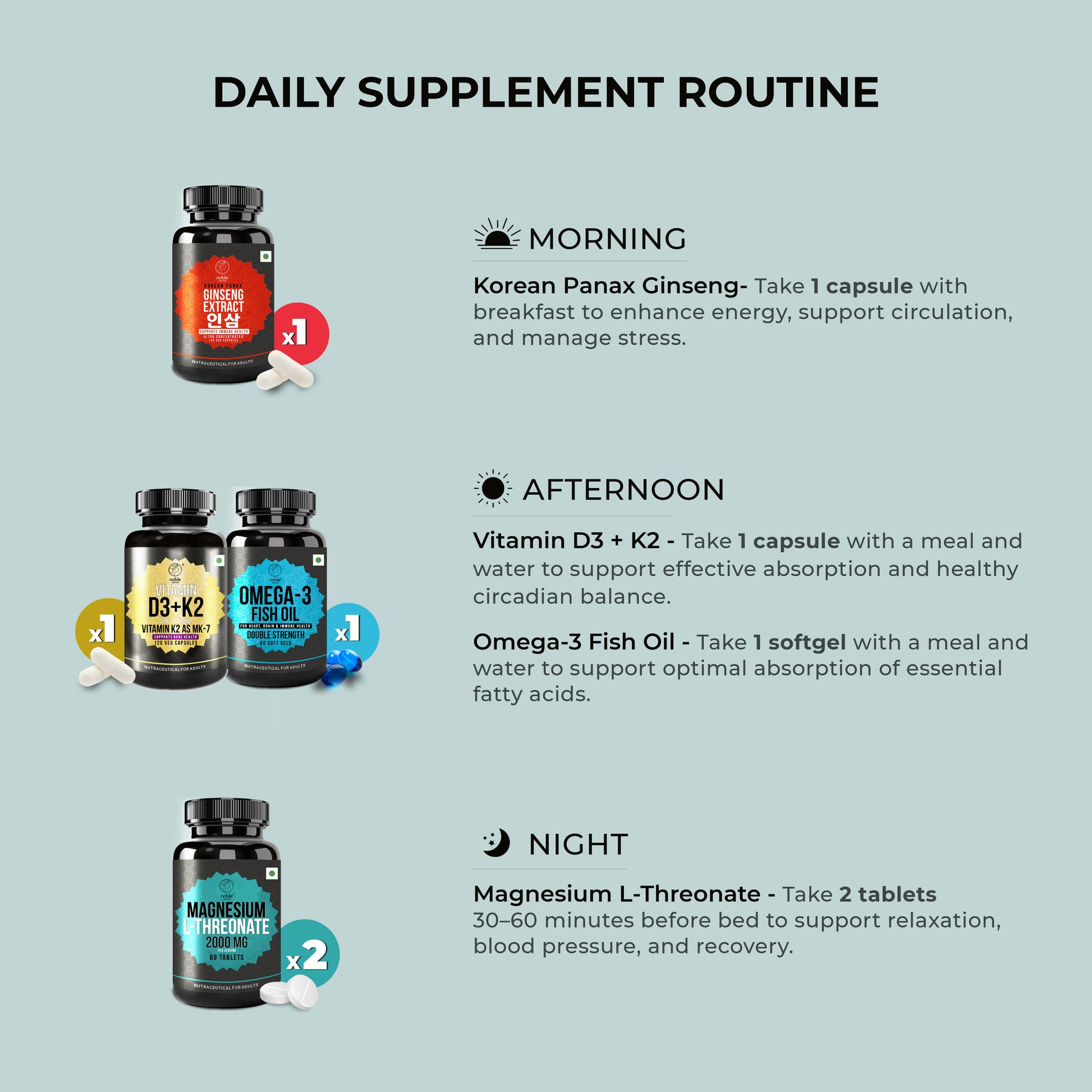 - Vitamin D3 + K2 — supports heart and bone health