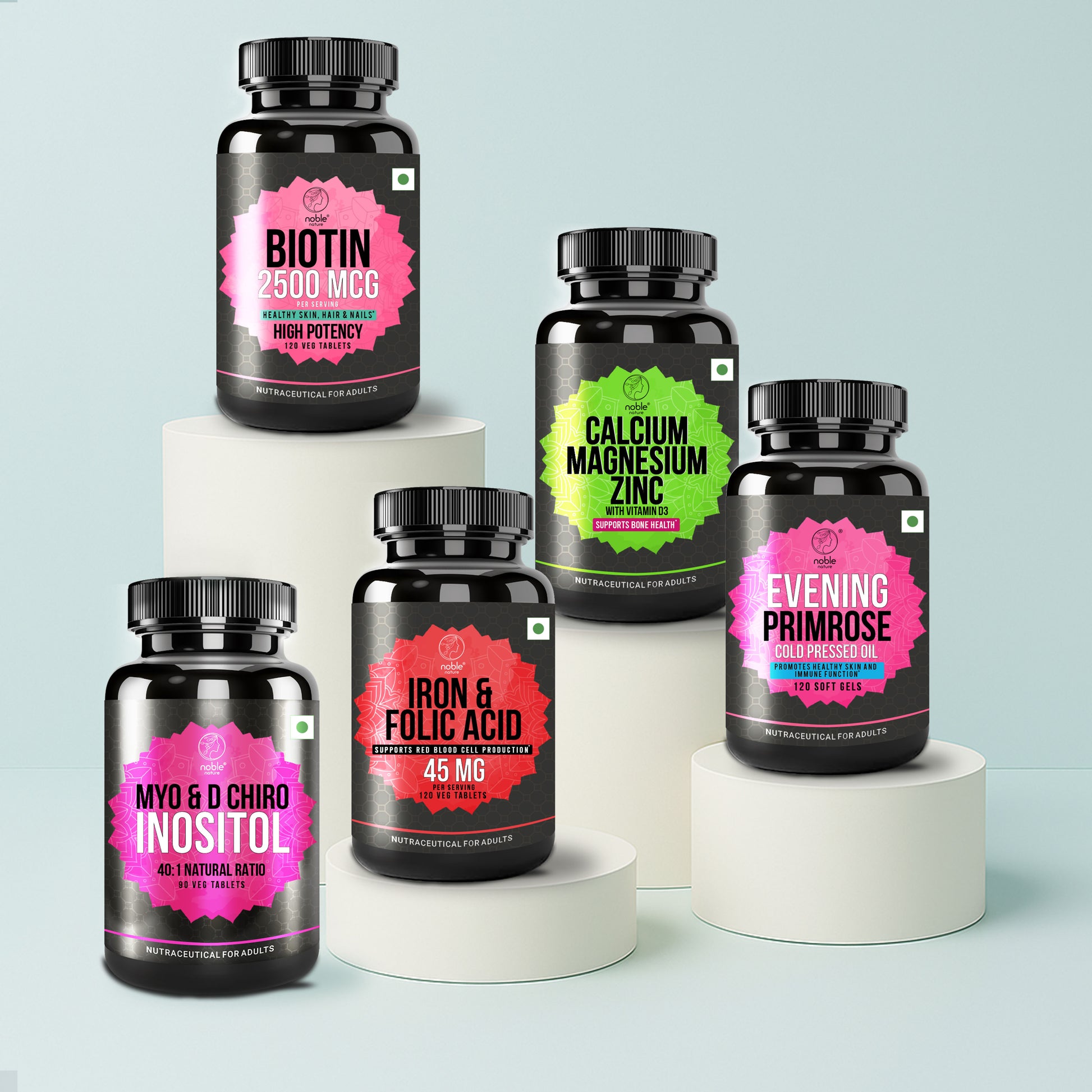 This powerful 5-in-1 women’s support bundle is designed to help:
